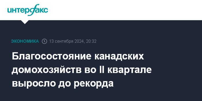 Благосостояние канадских домохозяйств во II квартале выросло до рекорда