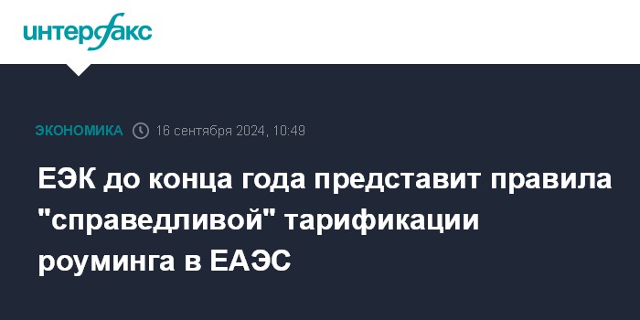 Москва. 16 сентября. INTERFAX.RU - Правила использования "справедливых тарифов" на услуги сотовой связи в международном роуминге на территории стран - участниц Евразийского экономического союза будет представлен до конца года, сообщила пресс-служба Евразийской экономической комиссии со ссылкой на директора департамента антимонопольного регулирования ЕЭК Сергея Максимова.