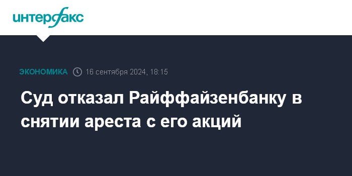 Суд отказал Райффайзенбанку в снятии ареста с его акций