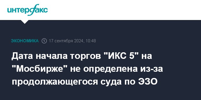Дата начала торгов "ИКС 5" на "Мосбирже" не определена из-за продолжающегося суда по ЭЗО