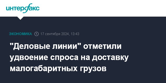 Москва. 17 сентября. INTERFAX.RU - Транспортно-логистический оператор "Деловые линии", один из крупнейших в РФ, по итогам I полугодия 2024 года отмечает рост спроса на доставку малогабаритных грузов в два раза по сравнению с аналогичным периодом 2023 года, сообщила пресс-служба компании.