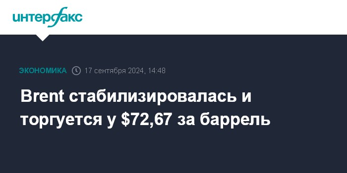 Brent стабилизировалась и торгуется у $72,67 за баррель