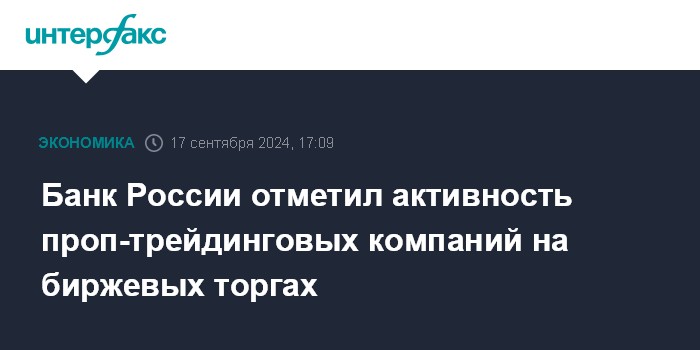 Москва. 17 сентября. INTERFAX.RU - Банк России отметил возрастающую торговую активность проп-трейдинговых компаний на биржевых торгах и в результате проверок установил факты манипулирования рынком при совершении сделок с фьючерсными контрактами и акциями на организованных торгах, в которые были вовлечены проп-трейдинговые компании, говорится в пресс-релизе регулятора.