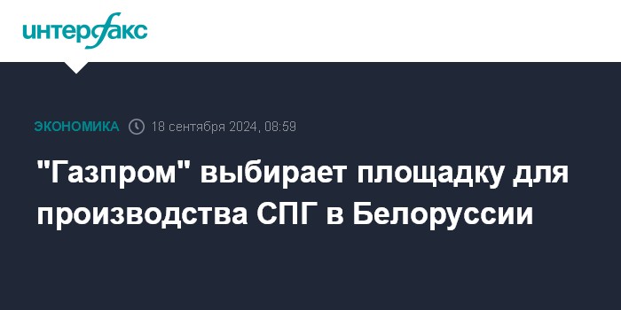 Москва. 18 сентября. INTERFAX.RU - "Газпром" выбирает площадку для производства сжиженного природного газа в Белоруссии, сообщил министр энергетики этой страны Алексей Кушнаренко.