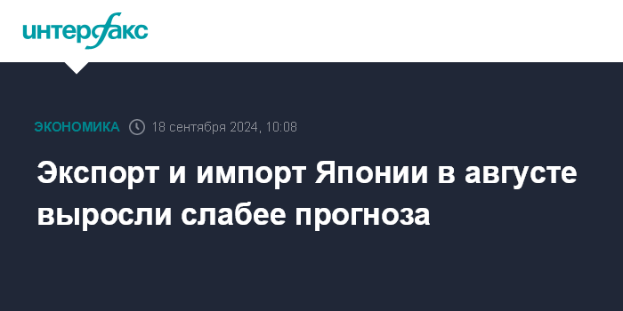 Экспорт и импорт Японии в августе выросли слабее прогноза