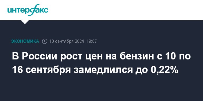 В России рост цен на бензин с 10 по 16 сентября замедлился до 0,22%