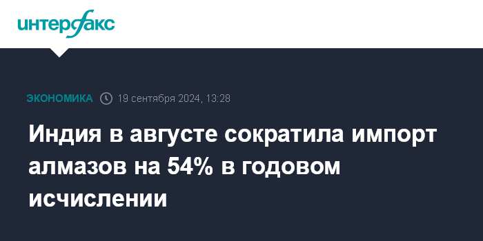 Индия в августе сократила импорт алмазов на 54% в годовом исчислении