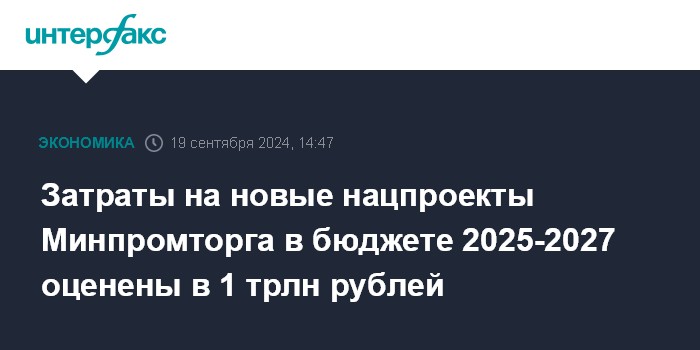 Затраты на новые нацпроекты Минпромторга в бюджете 2025-2027 оценены в 1 трлн рублей