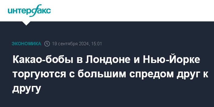 Какао-бобы в Лондоне и Нью-Йорке торгуются с большим спредом друг к другу