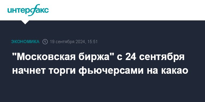 "Московская биржа" с 24 сентября начнет торги фьючерсами на какао