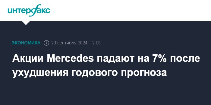 Акции Mercedes-Benz дешевеют на 7% в ходе торгов в пятницу. Бумаги других европейских автопроизводителей также снижаются в цене, в том числе Volvo (-4,2%) и Stellantis (-2,7%).
