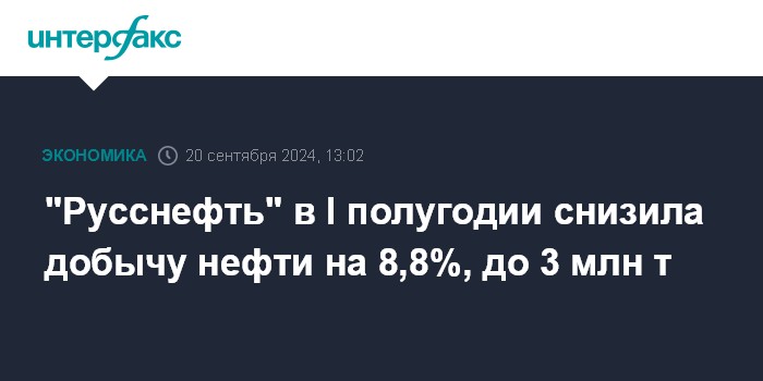 Представитель "Русснефти" пояснил "Интерфаксу", что снижение нефтедобычи главным образом обусловлено обязательствами России по сокращению нефтепроизводства в рамках сделки ОПЕК+.