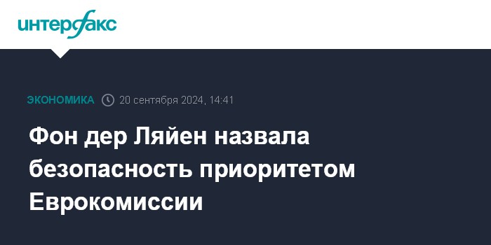 Москва. 20 сентября. INTERFAX.RU - Председатель Еврокомиссии Урсула фон дер Ляйен заявила, что рассматривает безопасность как приоритетное направление работы ЕК, передает ERR.