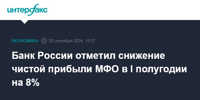 Банк России отметил снижение чистой прибыли МФО в I полугодии на 8%