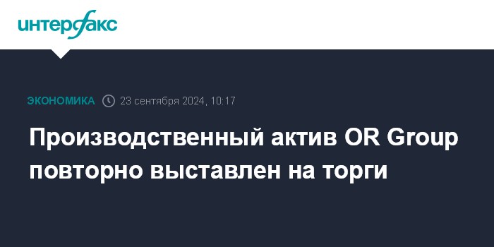 Москва. 23 сентября. INTERFAX.RU - Движимое и недвижимое имущество ООО "Фабрика С-Теп" (основной производственный актив OR Group, находится в процедуре конкурсного производства) остался невостребованным на аукционе 19 сентября, сообщается в материалах единого федерального реестра сведений о банкротствах (ЕФРСБ).