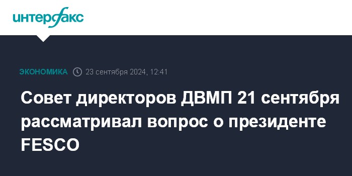 Совет директоров ДВМП 21 сентября рассматривал вопрос о президенте FESCO