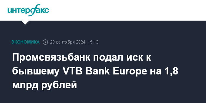 Промсвязьбанк подал иск к бывшему VTB Bank Europe на 1,8 млрд рублей
