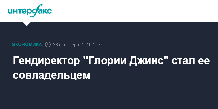 Москва. 23 сентября. INTERFAX.RU - Гендиректор российского производителя и продавца одежды "Глория Джинс" Максим Басов стал ее миноритарным совладельцем.