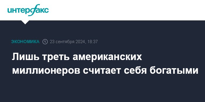 Москва. 23 сентября. INTERFAX.RU - В США только 33% долларовых миллионеров считают себя богатыми, показал опрос компании Edelman Financial Engines.