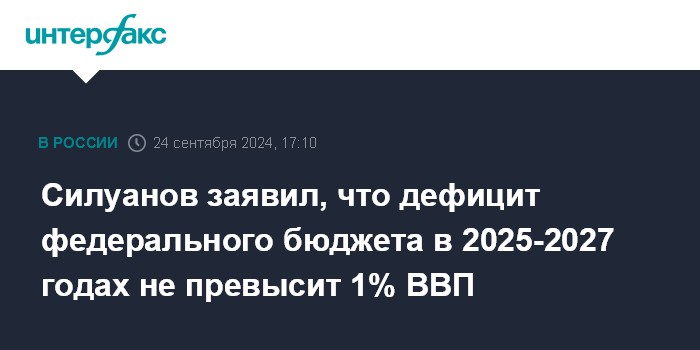Силуанов заявил, что дефицит федерального бюджета в 2025-2027 годах не превысит 1% ВВП