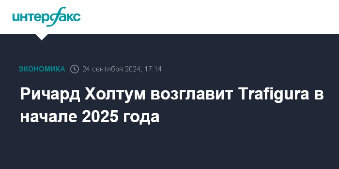 Москва. 24 сентября. INTERFAX.RU - Trafigura, один из крупнейших сырьевых трейдеров мира, объявила о назначении Ричарда Холтума главным исполнительным директором.