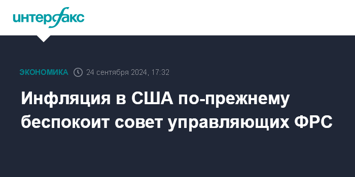 Москва. 24 сентября. INTERFAX.RU - Инфляция в США по-прежнему вызывает больше беспокойства, чем потенциальная слабость рынка труда, заявила на заседании Ассоциации банкиров Кентукки член совета управляющих Федеральной резервной системы Мишель Боуман .