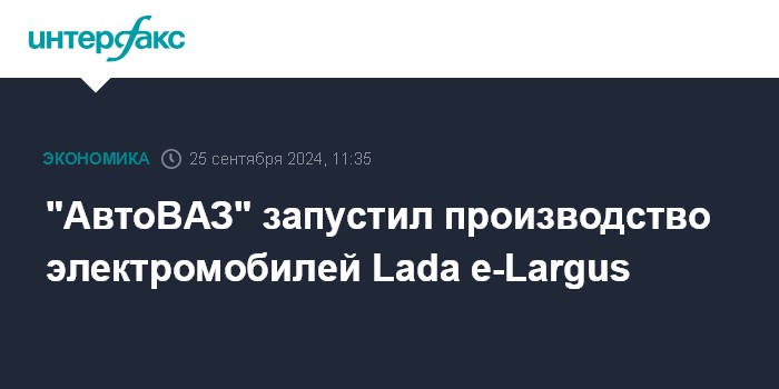 Москва. 25 сентября. INTERFAX.RU - Промышленный выпуск электромобиля Lada e-Largus стартовал в среду на площадке "АвтоВАЗа" Lada Ижевск, сообщила пресс-служба автопроизводителя.