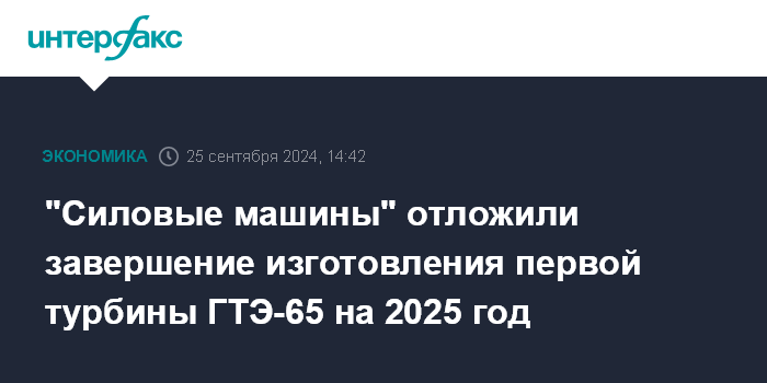 "Силовые машины" отложили завершение изготовления первой турбины ГТЭ-65 на 2025 год