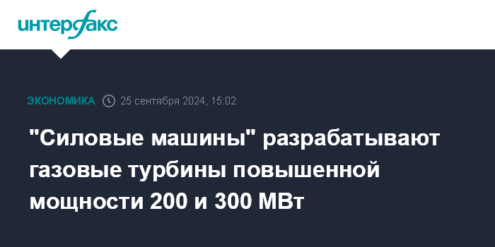 Москва. 25 сентября. INTERFAX.RU - АО "Силовые машины" в настоящее время ведет разработку газовых турбин мощностью 200 МВт и 300 МВт, сообщил на конференции "Территория энергетического диалога" генеральный конструктор компании Александр Ивановский.
