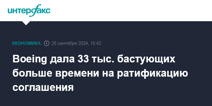 Boeing дала 33 тыс. бастующих больше времени на ратификацию соглашения