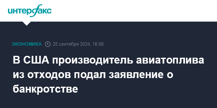 В США производитель авиатоплива из отходов подал заявление о банкротстве
