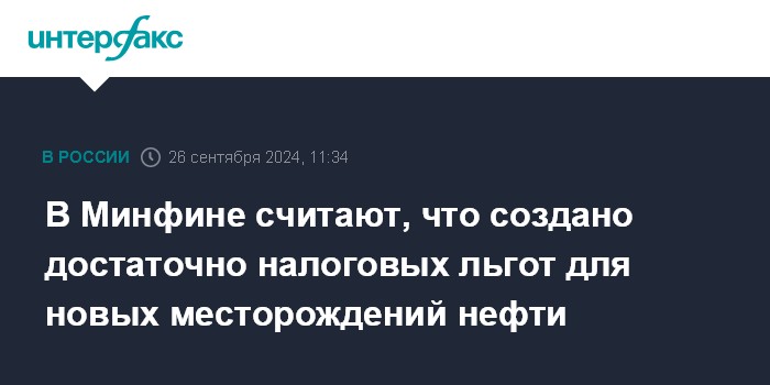 В Минфине считают, что создано достаточно налоговых льгот для новых месторождений нефти