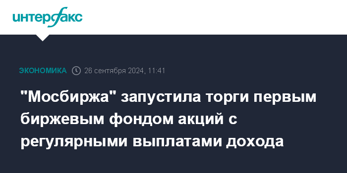 "Мосбиржа" запустила торги первым биржевым фондом акций с регулярными выплатами дохода