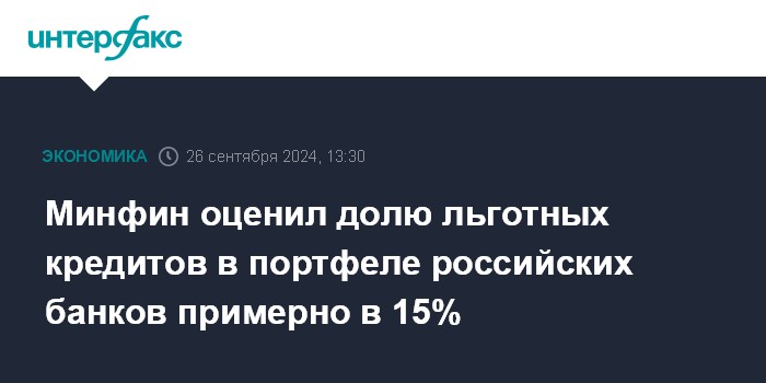 Минфин оценил долю льготных кредитов в портфеле российских банков примерно в 15%