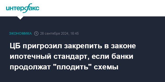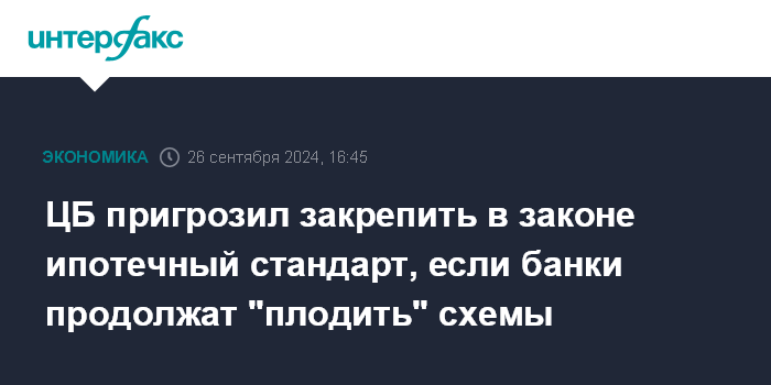 ЦБ пригрозил закрепить в законе ипотечный стандарт, если банки продолжат "плодить" схемы
