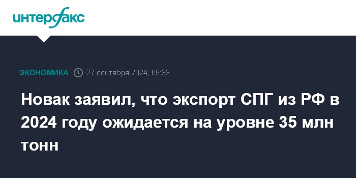 "Оценки тоже есть (по экспорту СПГ - ИФ): примерно 35 миллионов тонн, на такие оценки выходим", - сказал Новак.