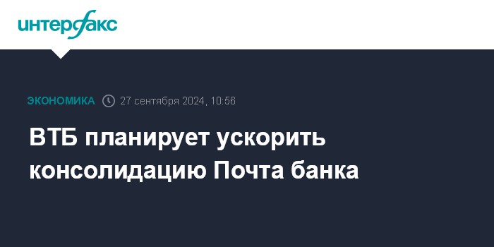 "Будем файлить (направлять - ИФ) ходатайство в ФАС в сентябре, получать разрешение Центрального банка на консолидацию акций Почта-банка, принадлежащих "Почте России" и Пахомову в группу, соответственно, и саму сделку стараться рассчитать после получения этих разрешений до конца 2024 года. Соответственно, весь 2025 год тратить на интеграционные мероприятия", - отметил первый зампред ВТБ.