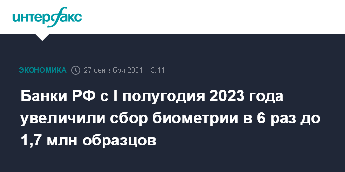 Банки РФ с I полугодия 2023 года увеличили сбор биометрии в 6 раз до 1,7 млн образцов