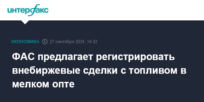ФАС предлагает регистрировать внебиржевые сделки с топливом в мелком опте
