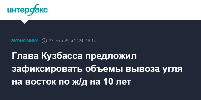 На 2024 год регион запрашивал 55 млн тонн гарантированной отгрузки и 60 млн тонн, "к которым РЖД надо стремиться", однако в итоге РЖД гарантировали в текущем году отгрузку угля на восток только в объёме 54,1 млн тонн. По данным за январь-август, которые Середюк озвучил на РЭН, в восточном направлении отгружено 35,8 млн тонн. На 2025 год Кузбасс предлагает договориться о гарантированной отгрузке 68 млн тонн угля на восток.