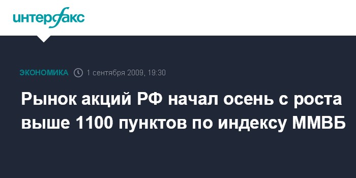 Рынок акций РФ начал осень с роста выше 1100 пунктов по индексу ММВБ