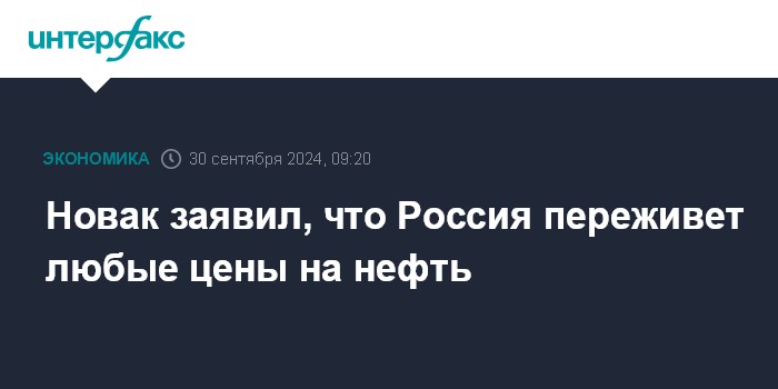 Москва. 30 сентября. INTERFAX.RU - Россия выдержит любое снижение цен на нефть, зависимость нашей экономики от углеводородов снижается, заявил вице-премьер РФ Александр Новак в интервью телеканалу "Аль-Арабия".