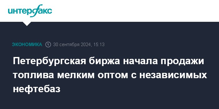 Москва. 30 сентября. INTERFAX.RU - Санкт-Петербургская международная товарно-сырьевая биржа (СПбМТСБ) начала продажи нефтепродуктов мелким оптом с независимых нефтебаз. Как говорится в сообщении СПбМТСБ, с 30 сентября на условиях "самовывоз автомобильным транспортом" реализация нефтепродуктов возможна с использованием денежного обеспечения независимыми участниками биржевого рынка нефтепродуктов.