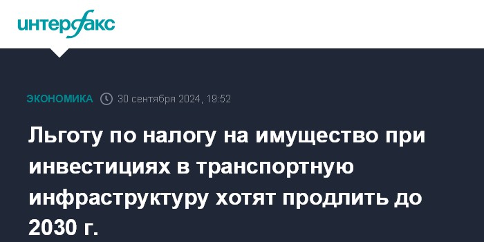 Льготу по налогу на имущество при инвестициях в транспортную инфраструктуру хотят продлить до 2030 г.