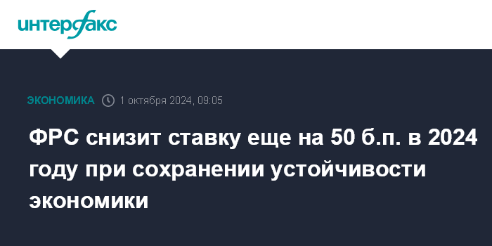 ФРС снизит ставку еще на 50 б.п. в 2024 году при сохранении устойчивости экономики