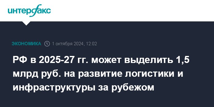 РФ в 2025-27 гг. может выделить 1,5 млрд руб. на развитие логистики и инфраструктуры за рубежом