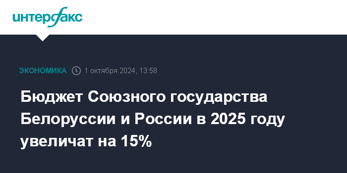 Бюджет Союзного государства Белоруссии и России в 2025 году увеличат на 15%