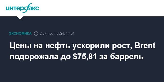 Котировки декабрьских фьючерсов на сорт Brent на лондонской бирже ICE Futures к 14:04 по московскому времени подскочили на $2,25 (3,06%), до $75,81 за баррель. Ранее в ходе торгов котировки превышали $76 за баррель впервые за месяц.