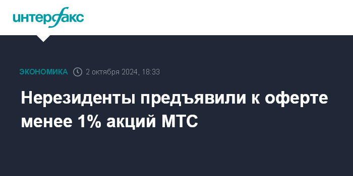 Нерезиденты предъявили к оферте менее 1% акций МТС