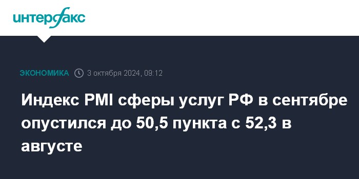 Индекс PMI сферы услуг РФ в сентябре опустился до 50,5 пункта с 52,3 в августе